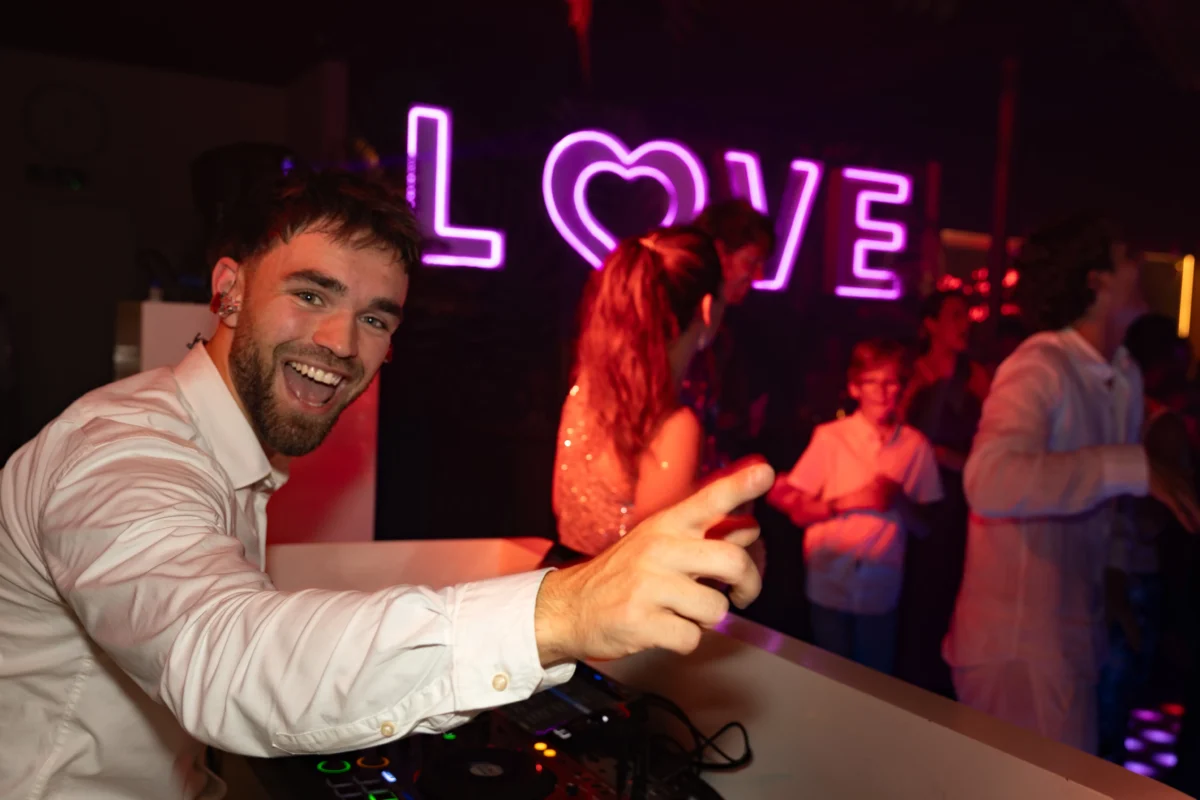 Wat mij onderscheidt van andere bruiloft dj’s, is mijn enthousiasme en energie. Ik zie mezelf dan ook niet alleen als een DJ, maar ook als iemand die sfeer creëert door interactie te maken met het publiek. Dit doe ik bijvoorbeeld door verzoeknummers te draaien en regelmatig de microfoon te pakken (mits ik merk dat dit gewaardeerd wordt).